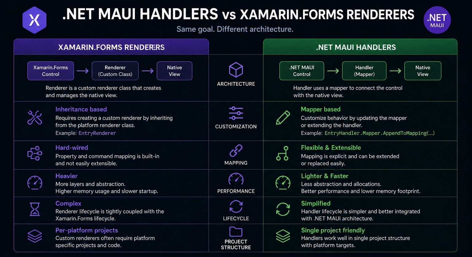 Migrating from Xamarin.Forms to MAUI is a meaningful refactor, not a simple upgrade. The project structure, namespace changes, startup model, renderer architecture, and NuGet ecosystem all changed. Microsoft provides a migration assistant tool that automates mechanical tasks such as namespace replacements, project file restructuring, and package updates, but custom renderers, platform-specific code, and third-party library compatibility require manual attention.